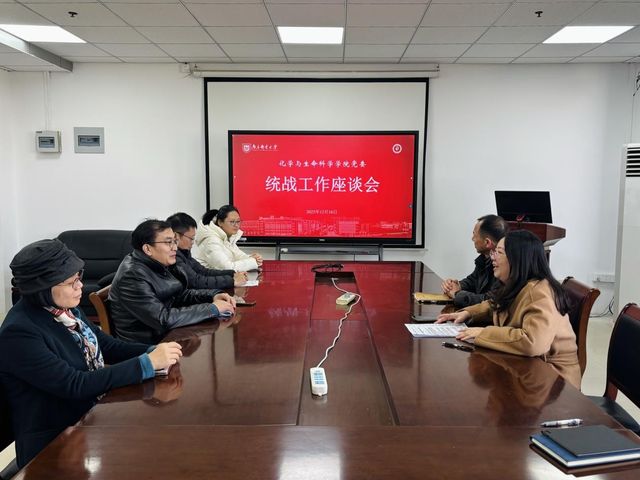 为深入学习贯彻习近平总书记关于做好新时代党的统一战线工作的重要思想,进一步凝聚党外知识分子智慧力量,12月16日下午,化学与生命科学学院党委在教5-504(2)召开2025年度统战工作座谈会。学院党委书记乔祖琴、党委副书记张建平出席会议,各民主党派成员、无党派人士代表参会,乔祖琴主持会议。 乔祖琴首先代表学院党委向统战对象长期以来与党同心同德、为学院建设发展作出的重要贡献表示衷心感谢,并介绍了学院统战工作现状及党外知识分子队伍建设情况,指出学院党外知识分子队伍持续壮大,已成为教学科研的中坚力量和推动高质量发展的宝贵财富,希望全体人员进一步提高政治站位,立足本职岗位,充分发挥专业和智力优势,紧扣立德树人根本任务,在学科建设、科研创新及社会服务等方面展现新作为,为学院改革发展贡献更多统战力量。 会上,乔祖琴领学了《中国共产党统一战线工作条例》《关于加强高校统一战线工作的意见》和习近平总书记在中共中央党外人士座谈会上的讲话精神,引导与会人员深刻领会新时代统战工作的重要意义,筑牢共同思想根基。 民盟江苏省委委员、民盟南京邮电大学委员会主委解令海教授介绍了民盟南邮委员会近年来在强化政治引领、规范组织架构、提升履职效能等方面的经验做法和工作成效,客观分析了组织发展过程中面临的机遇和挑战。与会代表结合自身岗位实际,围绕所在党派工作开展情况、参政议政等实践成果进行了深入交流,并就学院发展规划、科研平台建设、创新人才培养以及学院统战工作机制等提出了建设性意见建议。 此次座谈会的召开,进一步统一了思想、凝聚了共识,明确了学院统战工作与中心工作同频共振的实践路径,为推动学院高质量发展注入了新动力。学院党委将持续完善大统战工作格局,团结带领广大统战成员同心同德、携手奋进,共同谱写学院内涵式发展新篇章。